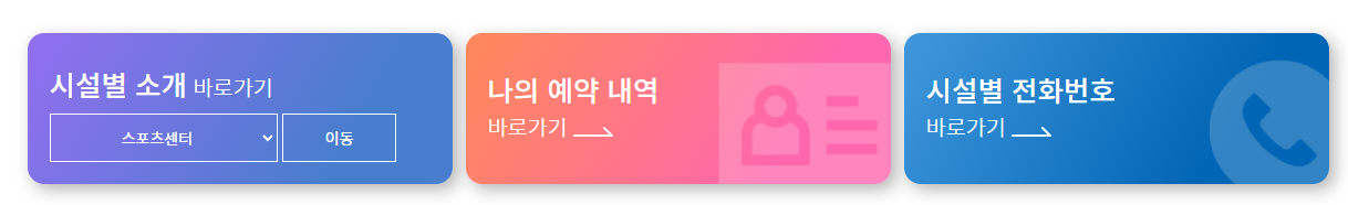 통합예약시스템은 웹사이트를 통해 접속할 수 있으며, 회원가입 후 로그인을 하면 예약 가능한 시설 리스트를 확인할 수 있습니다. 시설별 사진, 위치, 운영시간, 이용 요금 등의 상세 정보가 제공되며, 원하는 날짜와 시간대를 선택해 간편하게 예약을 진행할 수 있습니다.