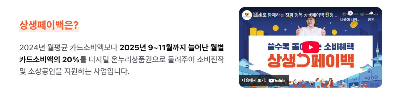 상생페이백은 지난해 카드 소비액 대비 올해 9~11월까지 증가한 소비액의 일정부분을 환급해주는 정부지원 제도입니다. .홈페이지 주소는 다음과 같습니다.