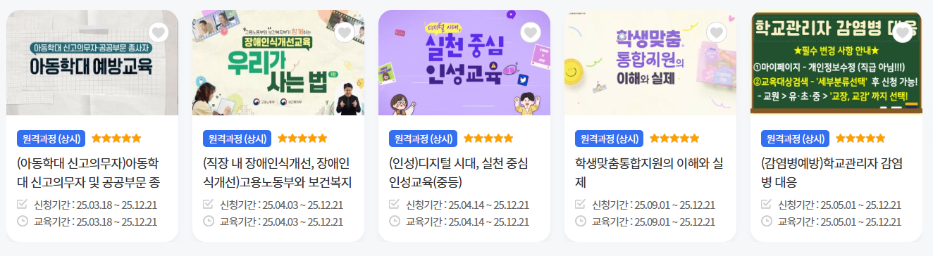 2025년 주요 과정으로는 인공지능 융합 수업 기초인 「AIEDAP 인공지능 융합 수업 기초」를 비롯해 기초학력 지원, 다문화 학생과의 소통을 위한 외국어 과정 등이 개설되어 있습니다. 대상자는 만 14세 이상 교육 관련 종사자로, 교원뿐 아니라 일반직 공무원이나 교육공무직도 포함됩니다. 연수 과정은 교원과 교원 외 인원에 따라 차시 수가 다르게 배정되어 있으며, 상시 진행되는 원격과정을 최대 3개까지 동시에 신청할 수 있습니다.