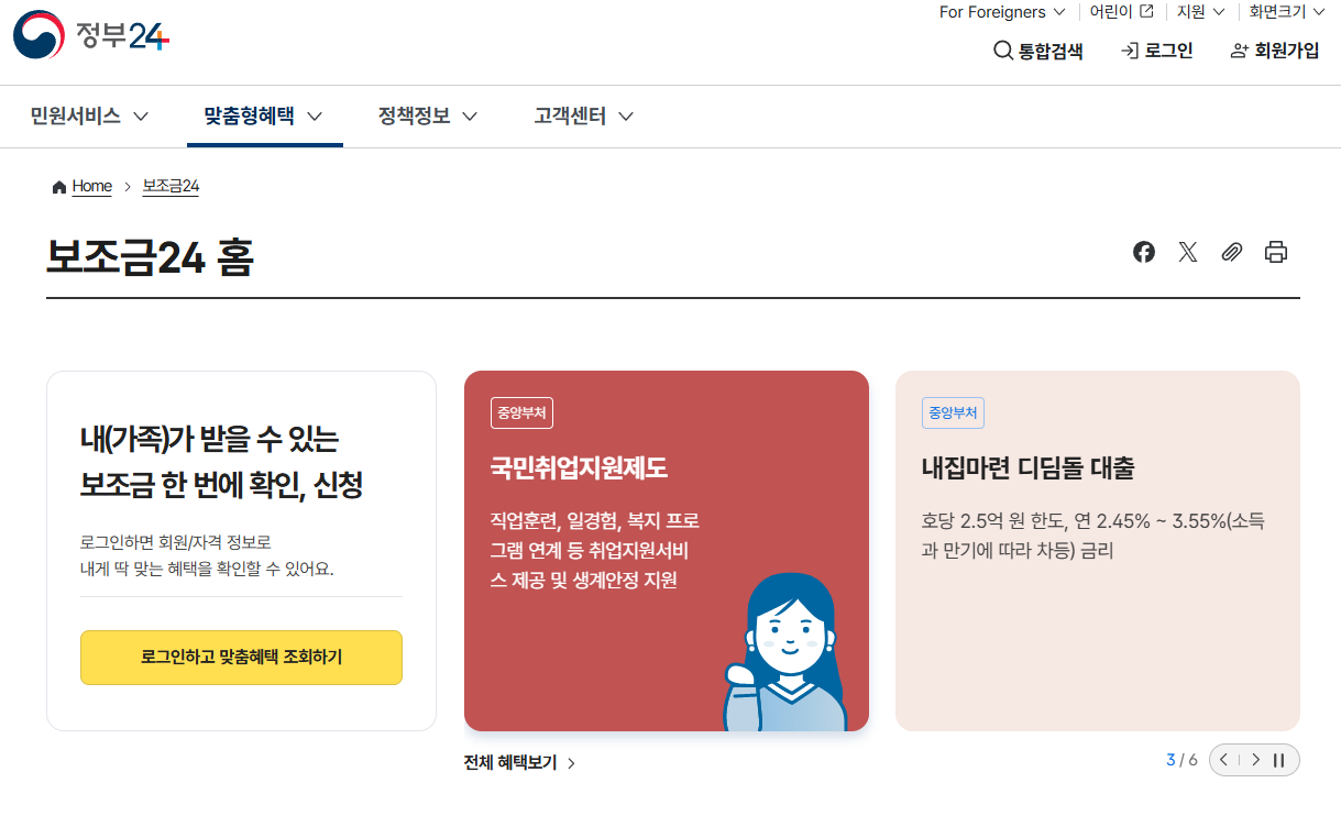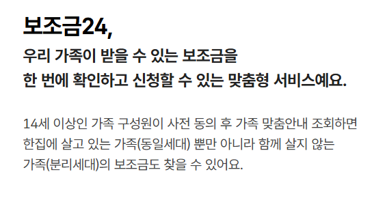 보조금24 홈페이지(정부24 내)는 다음과 같은 기능들을 제공합니다.