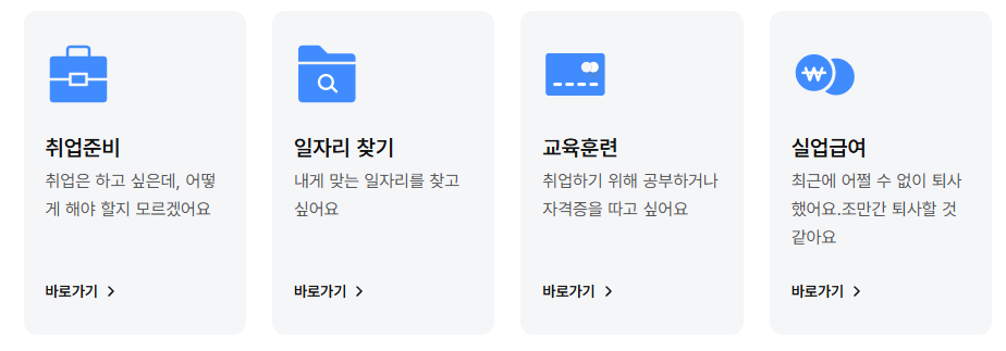 -국민취업지원제도: 구직촉진수당, 참여수당, 취업성공수당 등 다양한 지원 제도를 확인하고 신청할 수 있습니다.