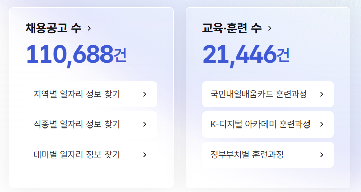 -직업훈련 신청: 국민내일배움카드 신청, 직업훈련 과정 검색과 신청이 지원됩니다.
